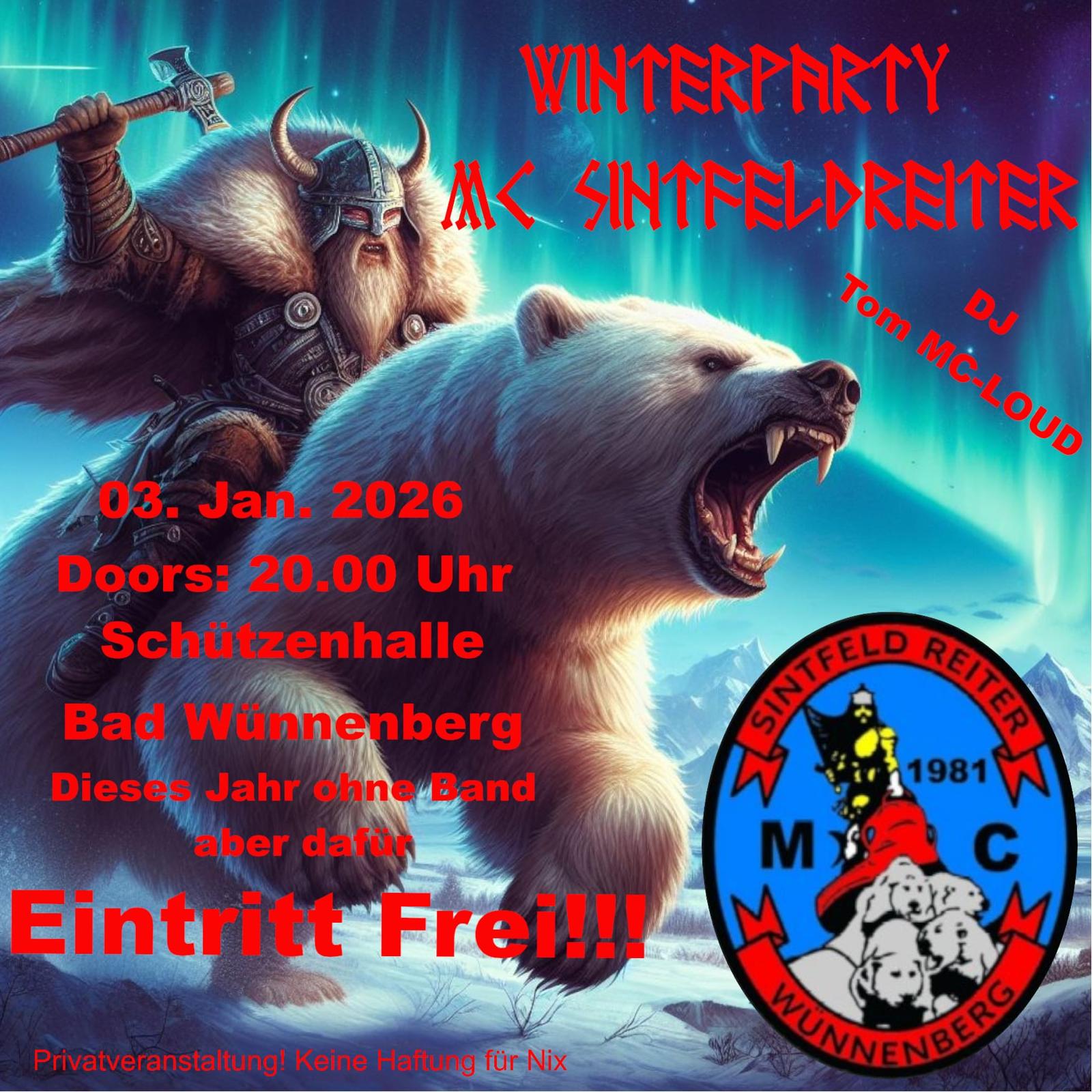 Am 3.1.2026 startet wieder unsere Winterparty!